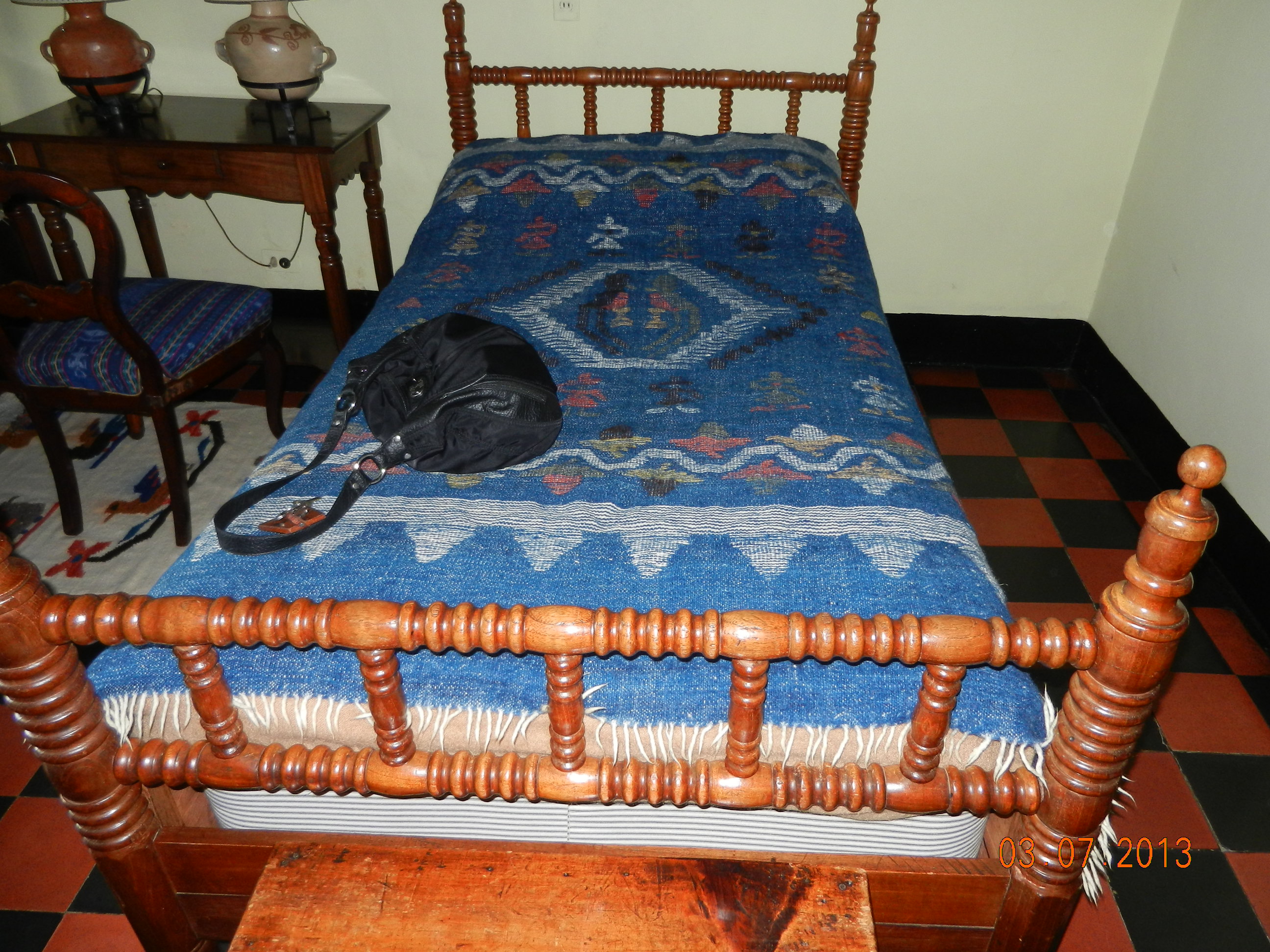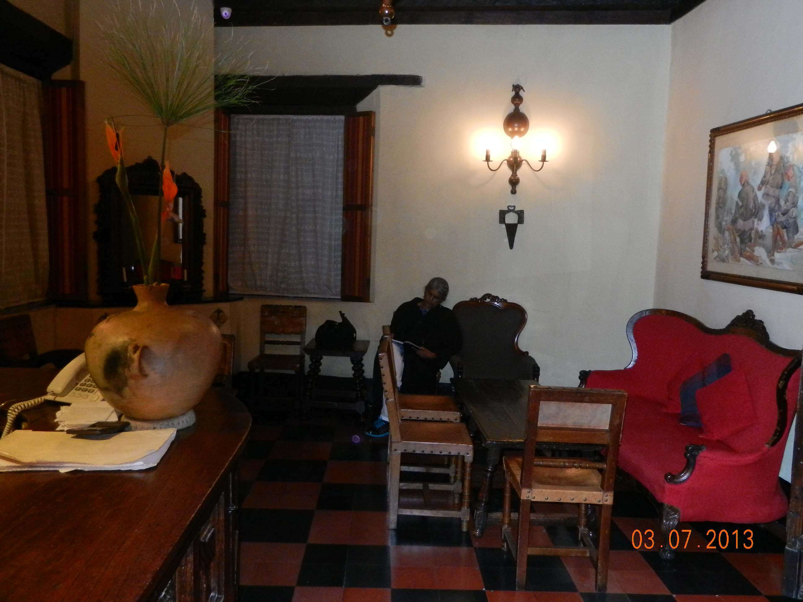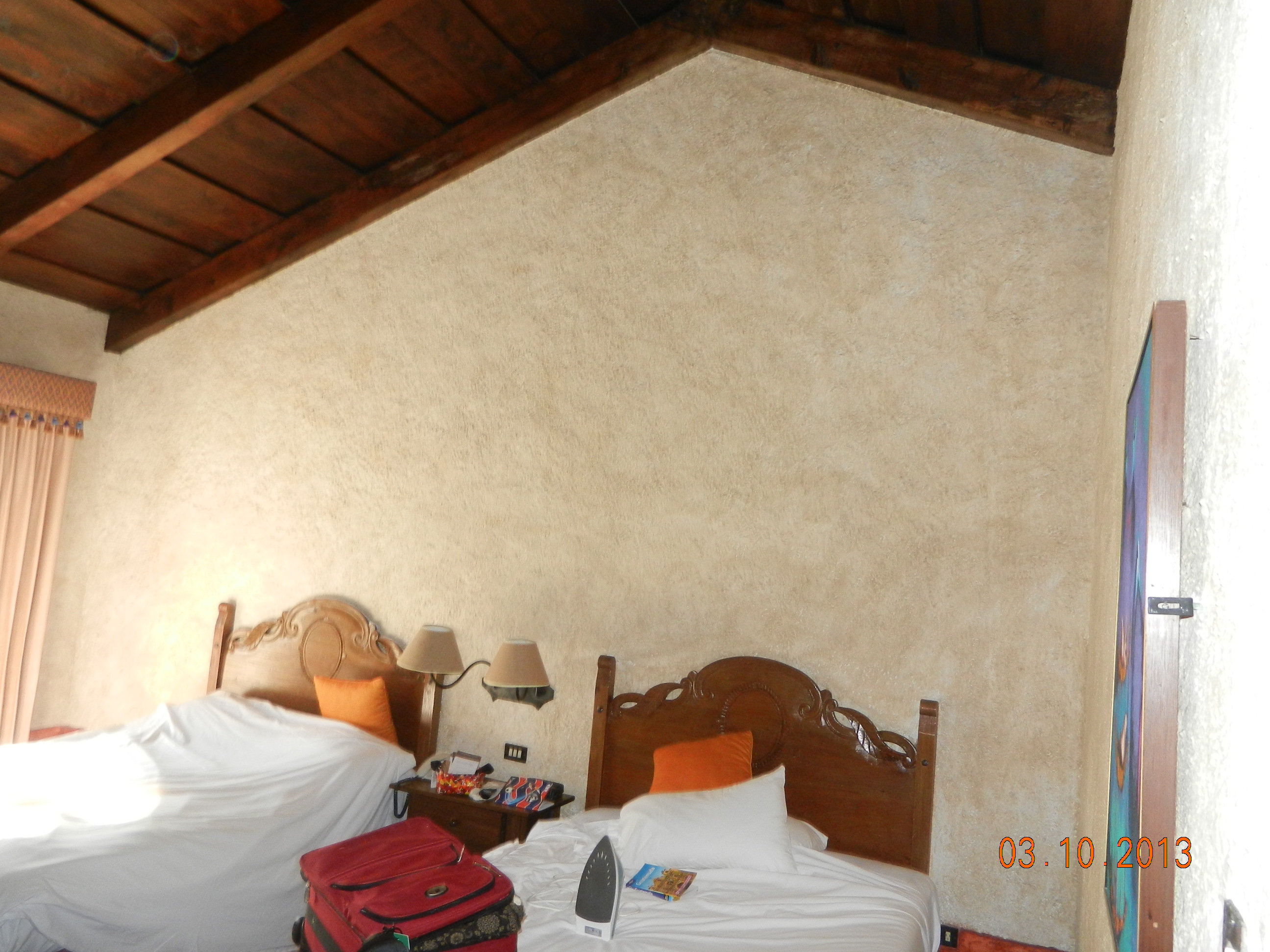 We finally urge the three of them to go sight-seeing and I eat something in the dining room. Casa Santo Domingo staff have been stellar throughout all this, letting us use their phones without a murmur and even helping us dial through. We have to send a letter of thanks to the manager letting him/her know what a classy staff they have there. Meanwhile, our bags are patiently waiting for us.