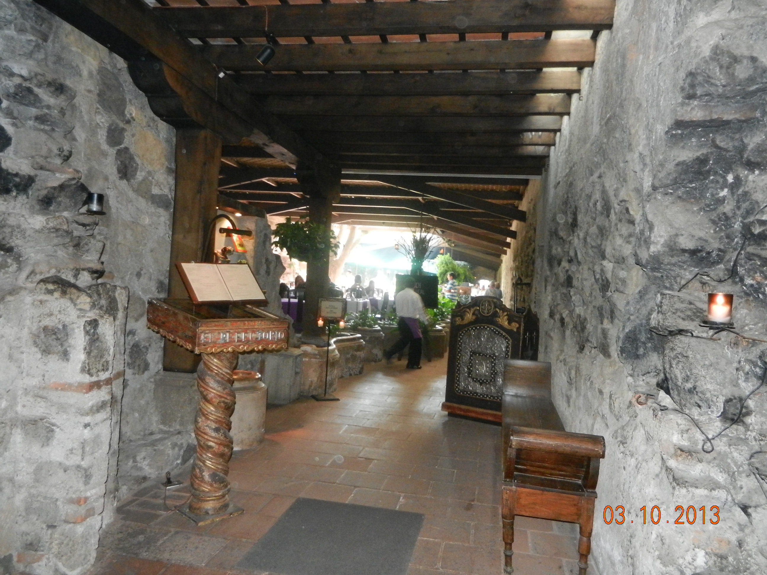 That night was so lovely eating in that dining room in Casa Santo Domingo. I think about it the next morning as we go in for breakfast. What a blast we had! Last night these mariachi guys sang to us moving from table to table and made me feel like giggling. The soup was heavenly and the waiters were dressed in purple while the hostess was dressed like a nun.