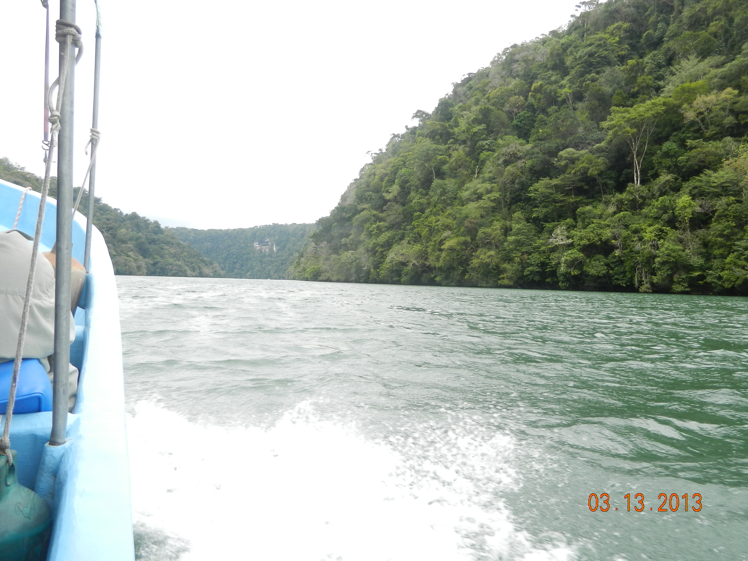 When I first read about Rio Dulce I wondered why a river was considered sweet; probably it looks beautiful, I thought to myself. Early morning on our fifth or sixth day in Gautemala, our guide hustled us to Amatique Bay to take a ride on Rio Dulce. He had not prepared me for the fact that we had to start at Amatique Bay on the Caribbean Sea. Just as we sat in the small boat with the nine of us ( two people to sit on each bench) Arty( that’s my name for him)the guide, casually mentioned,” Oh the Caribbean sea will be a bit rough but once we get to the river we will be fine!” He did not mention how long ( or maybe by then I was too paralyzed with fear to hear him say that; did I forget to mention that I am terrified of boat rides since I feel sick even on the passenger seat of a car?) or how rough.